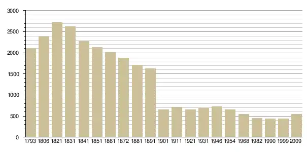 - Insee : historique des populations par commune depuis le recensement de 1962, наведено за французькою вікіпедією