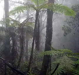 Нефелогілея; хмарні, туманні, або мохові ліси — вид біому, зазвичай тропічний або субтропічний вічнозелений гірський дощовий ліс, що характеризується великою частотою укриття низькими хмарами, часто на рівні крон. Хмарні ліси часто також характеризуються великою кількістю мохового вкриття ґрунту та стовбурів дерев, у цьому випадку вони також називаються «моховими лісами». Ці ліси часто розвиваються на перевалах гір, де волога хмар найкраще утримується[1].