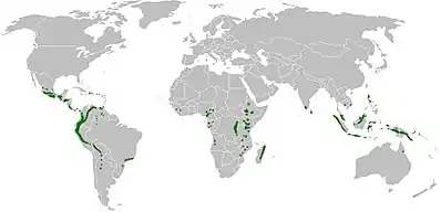 Щорічна кількість опадів може коливатися від 500 до 10000 мм/рік і середній температурі від 8 до 20 ° С[3]