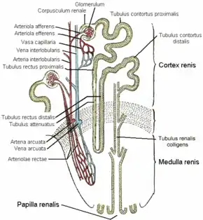 Нефро́н (з грец. nephros — нирка) — структурнофункціональна одиниця нирки. У кожній нирці нараховується близько двох мільйонів нефронів. Нефрон — це епітеліальна структура, яка являє собою систему звивистих і прямих канальців, що сліпо починаються капсулою від судинного клубочка кожного ниркового тільця, та впадає у збірну трубочку.[2]