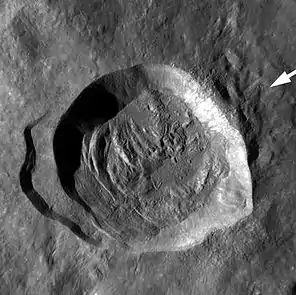 Кратер оточений областю порід з високим альбедо, викинутих під час його утворення, діаметром у кілька діаметрів самого кратера, окремі промені тягнуться на значну відстань.