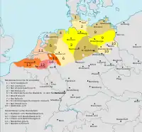 - ширший термін, що включає всі західногерманські говірки без верхньонімецького переходу приголосних, крім англо-фризьких, тобто включаючи нижньофранконські говірки, зокрема нідерландську мову та африкаанс.