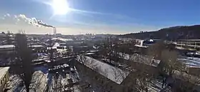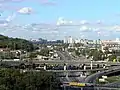 Селище Мостобуду і промзона «Теличка». На задньому плані — Позняки та Південний міст, справа — ТЕЦ-5