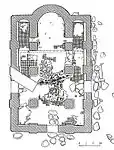 Досліджена археологічно в 1930-тих — 1940-вих рр. Це був шестистовпний триабсидний храм (лише центральна абсида мала виступ ззовні), пізніше знищений пожежею.