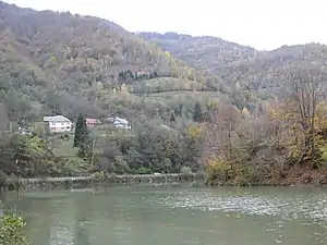![]() Східна околиця села і водосховище на річці Ріка (2018 р.) | |||
