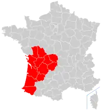| Департаменти | Дордонь Жиронда Ланди (департамент) Лот і Гаронна Атлантичні Піренеї В'єнна Де-Севр Приморська Шаранта Шаранта Крез Коррез Верхня В'єнна | |||||||||
