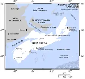 - The Canadian Encyclopedia. Nova Scotia. Архів оригіналу за 9 березня 2011. Процитовано 20 березня 2013.