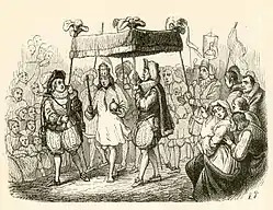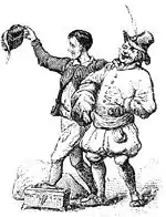 Подібний, але більш розгорнутий сюжет згадується у народних голландських легендах про Тіля Уленшпігеля, позитивного фольклорного героя XIV століття, широко відомому у викладі Шарля де Костера. За легендою, Уленшпігель, який вдавав майстерного маляра́, запропонував одному ландграфові зобразити його на картині в оточенні наближених знатних людей.