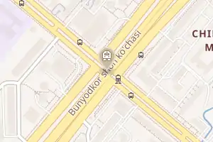 | Виходи до | Розташована на розі проспекту Бунйодкор і та вул. Мукімі. |