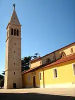 - Дзвіниця — дзвіниця, розташована безпосередньо у парафіяльної церкви Св. Пелагія та Св. Максима була побудована у 1883 році. На вершині піраміди, яка вінчає будівлю, знаходиться вкрита бронзою дерев'яна статуя покровителя міста, Св. Пелагія створена у 1913 році.