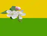 Прямокутне полотнище складається з двох частин. Верхня половина прапора жовтого кольору, нижня – зеленого кольору. У лівій частині розміщено три яблуневі квітки – символ садків, що розміщено в селі та навколо нього.