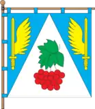 Прапор територіальної громади являє собою прямокутне полотнище, з нижніх кутів до середини верхнього краю йде білий клин, на якому червоний кетяг калини зі зеленим листком, обабіч на синьому тлі по жовтому мечу з крилом, повернутим вістрям вгору.