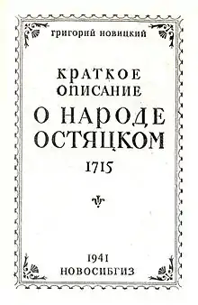 Автор однієї з перших етнографічних праць «Короткий опис про народ остяцький» (1715), що містить важливий етнографічний матеріал про хантів (остяків). Цю працю видано німецькою мовою (без зазначення автора) 1720, а 1730 і 1744 рр. (фрагменти) та в 1884 і 1941 рр. — російською мовою (повністю).
