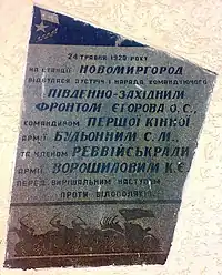 24 травня 1920 року, в ході польсько-радянської війни на станції Новомиргород відбулася зустріч та нарада командувача Південно-Західного фронту Олександра Єгорова з командувачем Першої кінної армії Семеном Будьонним та членом Реввійськради РСЧА Климентом Ворошиловим, на якій було ухвалено рішення про наступ проти польсько-українських частин на Поділлі.