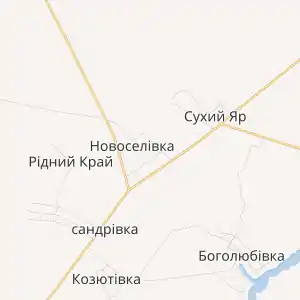 За 2 км від селища Новоселівка знаходяться села Сухий Яр і Рідний Край. Через село протікає пересихаючий струмок, на якому зроблено кілька загат. Струмок через 10 км впадає в річку Волоська Балаклійка.