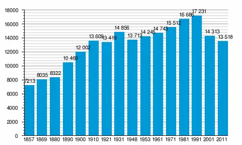 Населення громади за даними перепису 2011 року становило 13518 осіб[1], 10 з яких назвали рідною українську мову[2]. Населення самого міста становило 7028 осіб.[1]