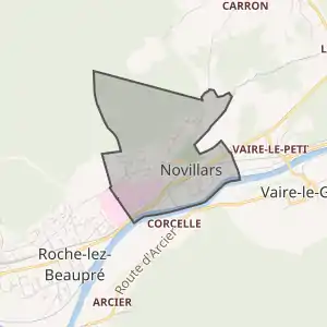 - Розташування муніципалітету Новіллар на мапі Франції та сусідні муніципалітети