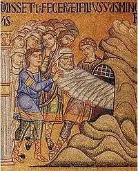 ![]() «Ной випускає голубку з ковчега». Фраґмент мозаїки к. XII — поч. XIII ст. Венеція, Собор Святого Марка | |