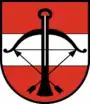 За основу прапора взято червоний щит, перекреслений товстою білою смугою. Майже всю площину герба займає арбалет з двома схрещеними стрілами. Деякі вчені вважають що цей символ - свідчення полювання Максиміліана I в цих місцях.