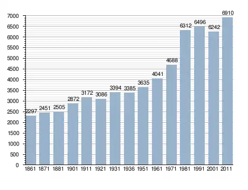 Станом на 31 грудня 2014 року в муніципалітеті офіційно проживав 321 іноземець з 24 країн, серед них 201 громадянин країн Євросоюзу та 2 громадяни України.[4]