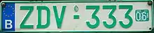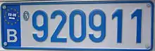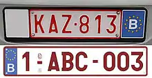 Передній номерний знак може бути ідентичний задньому або схожий на європейський номерний знак із зображенням смуги ЄС. Задній номерний знак кріпиться на іншу пластину, на якій зображена літера «В» і логотип виробника автомобіля.