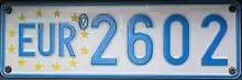 Номерні знаки транспортних засобів «Євроконтролю» могли раніше отримати блакитну табличку з трьома цифрами, за якими йшов код «EURO». Як і всі сині номери замінені на серію зразка 8-AAA-111.
