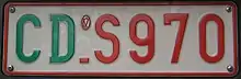 Початкові літери «CD» друкуються зеленим або червоним кольором, після чого йде крапка "." і 4 символи (5 символів у 2010 році), надруковані червоним кольором. За хронологічним порядком реєстрації ці символи можуть бути: