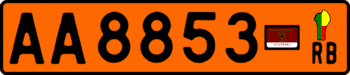 Комерційний транспорт має номерні знаки із чорними символами на помаранчевому тлі. Формат номерних знаків є аналогічним до регулярних. В правому боці пластини розташовано зображення мапи країни у кольорах державного прапору під яким розташовано код RВ. Між основною групою символів і кодом розташовується прямокутна наліпка.