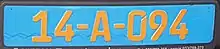 - Дипломатичні — блакитний фон і жовтий шрифт. Використовуються літери А, С, М і Е (наприклад, 00-А-000).