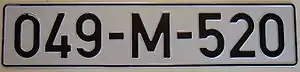 - Тимчасові — префікс «TT» (Testne Tablice), за яким слідують шість цифр. Літери червоного кольору (наприклад, TT-000000 ).
