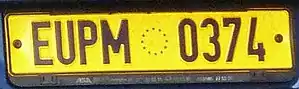 - Поілцейської місії ЄС — жовте тло і префікс «EUPM», за яким слідують цифри.