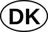 Якщо зареєстрований в Данії транспортний засіб не має знака з EU-смугою, він повинен бути обладнаний затвердженим овальним знаком «DK» в разі виїзду за кордон. Знак повинен бути еліптичним (овальним) 175 × 115 мм, напис чорними літерами на білому тлі. Літери повинні бути висотою 80 мм, відстань між ними — 10 мм, реклами — заборонена.[9]
