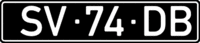 Номерні знаки причепів мають формат «АВ-1234», де АВ — покажчик регіону, 1234 — номер та мають білі знаки на чорному тлі.