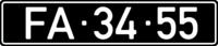 Військові ТЗ мають схему «АВ-12-34», де АВ — покажчик (FA — повітряні сили, DC — сили оборони). Білі знаки на чорному тлі.