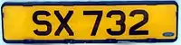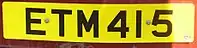 Складається з трьох літер і трьох цифр (наприклад, «ABC123») на жовтому тлі. Початковий префікс «T» був опущений після 2013 року.