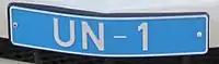 Таблички «UNFICYP» на синьому фоні і з префіксами «UN» або «UNF», за якими слідують три цифри.[2]