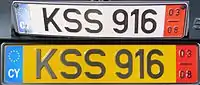 Після вступу Кіпру до Європейського Союзу в 2004 році номерні знаки, отримали смугу ЄС зліва пластини з міжнародним кодом країни «CY».
