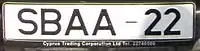 Номери суверенних базових областей мають префікс «SBAA», за яким слідують дві цифри на тлі того ж кольору та шрифту, що і в Республіці Кіпр.[3]