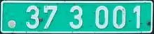 Дипломатичний транспорт має номерні знаки зеленого кольору з білими знаками формату «:12 3 456», де 12 — код країни, 3 — код типу дипломатичного персоналу, 456 — номер.