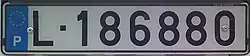 Номерні знаки жовтого кольору з чорним шрифтом, блакитною стрічкою з кодом (Р) та зірками Євросоюзу в лівому боці, в правому — біле поле з датою чинності та літерами EXP. Номерні знаки мають формат 12345-А і видаються лише в регіонах A, L, M, P.
