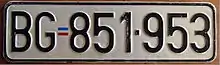 На додаток до цих мітках, «дипломатична» пластина на лівому кінці включає невелике мітку міста, або області реєстрації, де зареєстровано транспортний засіб (наприклад BG) і дві останні цифри року, в якому він зареєстрований (нпр. 11).