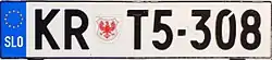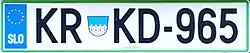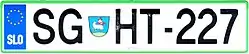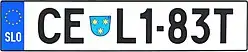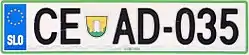 У Словенії є 11 областей реєстрації, які позначені на знаках кодом з двох літер. За часів Югославії їх було 8.[1]