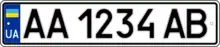 - 1.1 — Знаки для всіх типів автомобілів, автомобільних причепів, автобусів. Розмір — 520×112 мм, тло — біле, символи — чорні. Поєднання літер ліворуч позначає регіон (див. таблицю), праворуч — серію номерного знака.