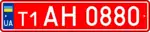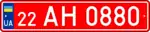- 2.2 — Номерні знаки, видані торговельним підприємством, для тимчасового використання (до 10 діб) на легкових і вантажних автомобілях, автобусах та мікроавтобусах, причепах, напівпричепах і причепах-розпусках. Розмір — 520×112 мм, тло — червоне, символи — білі.