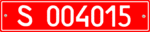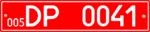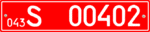 - 3.2 — Номерні знаки для тимчасового використання на транспортних засобах з об'ємом двигуна, що не перевищує 50 см³. Розмір — 140×114 мм, тло — червоне, символи — білі.
