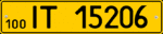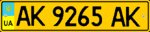 - 1.2 — Номерні знаки для маршрутних автобусів та мікроавтобусів і таксі. Розмір — 520×112 мм, тло — жовте, символи — чорні. Поєднання літер ліворуч позначає регіон (див. таблицю), праворуч — серію номерного знака.