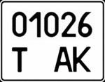 - 7.2 — Номерні знаки, що виготовляються за індивідуальним замовленням для мотоциклів. Розмір — 220×174 мм, тло — біле, символи — чорні.