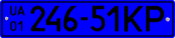 - 11 — Номерні знаки МВС України. 520×112 мм, тло — блакитне, символи — білі.