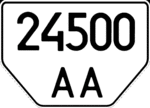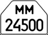 - 3.1 — Номерні знаки для транспортних засобів з об'ємом двигуна, що не перевищує 50 см³. Розмір — 140×114 мм, тло — біле, символи — чорні.