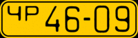 Після закінчення Другої Світової Війни всі землі сучасної України увійшли до складу СРСР. В 1947 році було оновлено вигляд (чорні символи на жовтому тлі) і змінено серії номерних знаків та запроваджено повну перереєстрацію транспорту, що перебував на окупованих територіях і трофейних ТЗ.